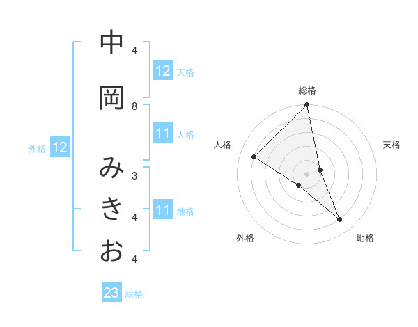 中岡 みきおさんを姓名の画数から五運を鑑定