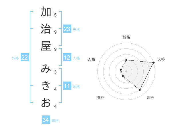 加治屋 みきおさんの天格は23画の5点