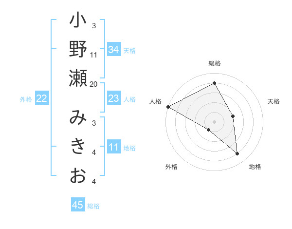 小野瀬 みきおさんを姓名の画数から五運を鑑定