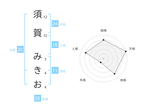 須賀 みきおさんを姓名の画数から五運を鑑定