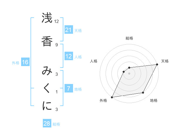 浅香 みくにさんを姓名の画数から五運を鑑定