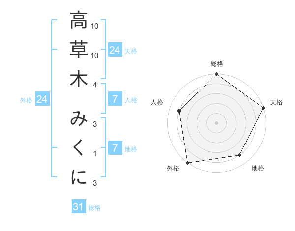高草木 みくにさんの天格は24画の5点!