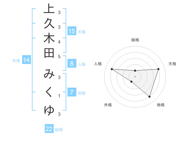上久木田 みくゆさんの天格は15画の4点!