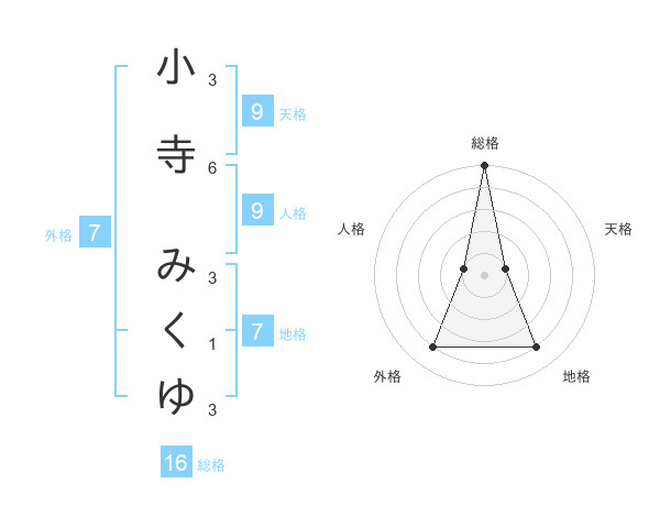 小寺 みくゆさんの総格は16画の5点!