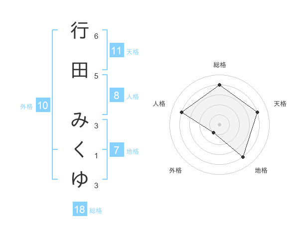行田 みくゆさんを姓名の画数から五運を鑑定