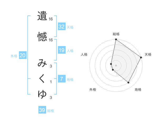 遺憾 みくゆさんを姓名の画数から五運を鑑定