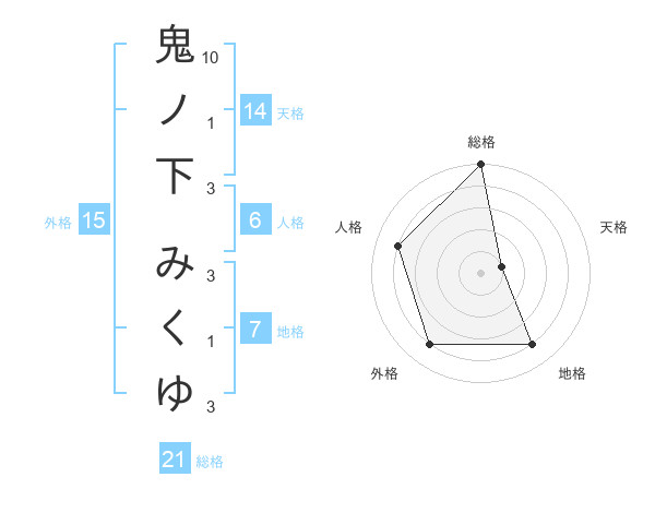 鬼ノ下 みくゆさんを姓名の画数から五運を鑑定