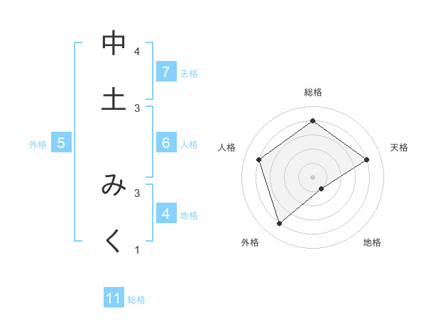 中土 みくさんの総格は11画の4点!