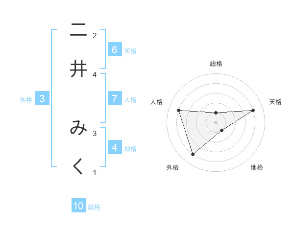 二井 みくさんの天格は6画の4点!