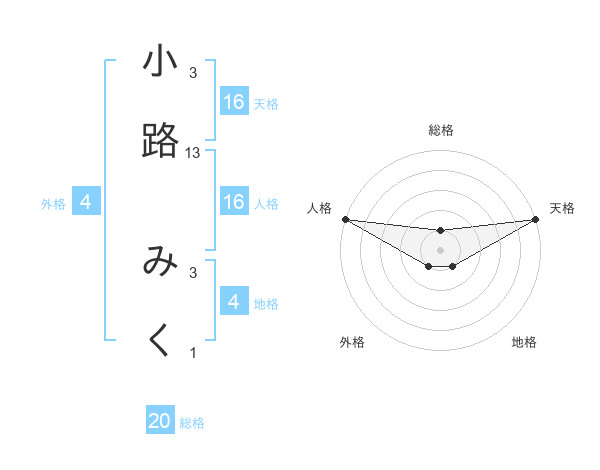 小路 みくさんの天格は16画の5点!