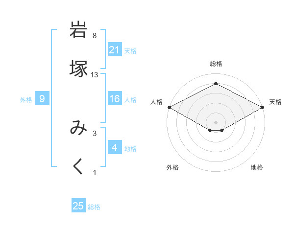 岩塚 みくさんを姓名の画数から五運を鑑定