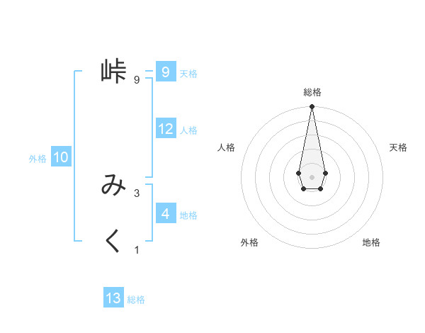 峠 みくさんの総格は13画の5点!