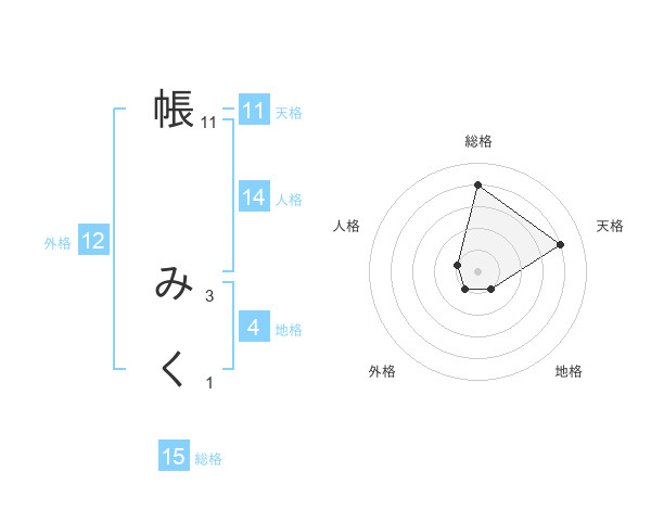 帳 みくさんの総格は15画の4点!