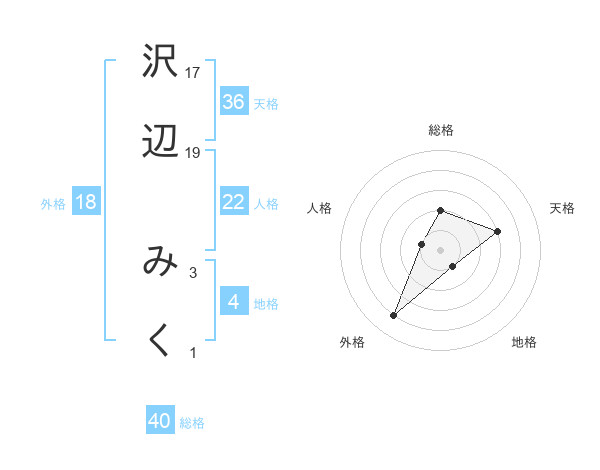 沢辺 みくさんを姓名の画数から五運を鑑定