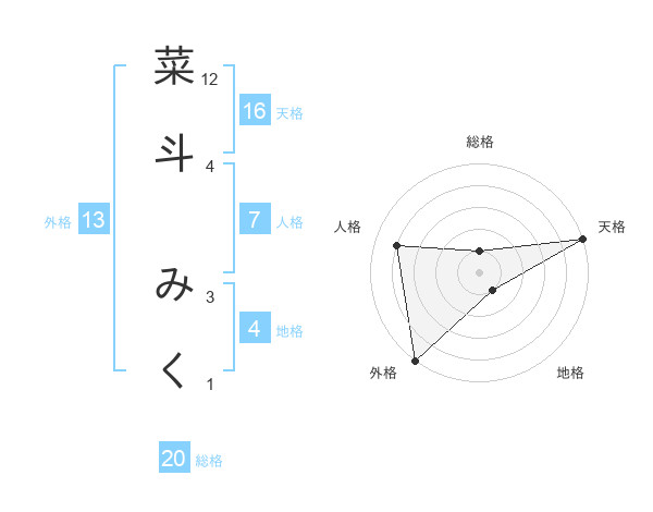 菜斗 みくさんの総格は20画の1点!