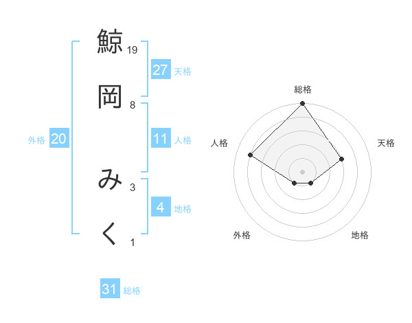 鯨岡 みくさんの総格は31画の5点!