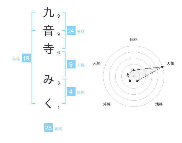 九音寺 みくさんの総格は28画の1点!