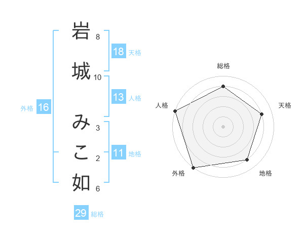 岩城 みこ如さんの総格は29画の4点!