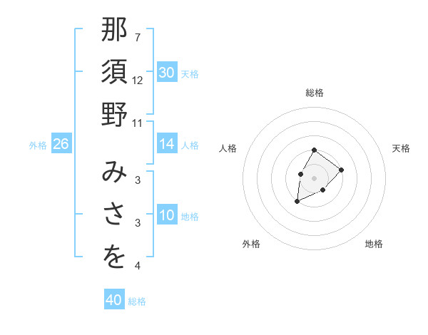 那須野 みさをさんを姓名の画数から五運を鑑定
