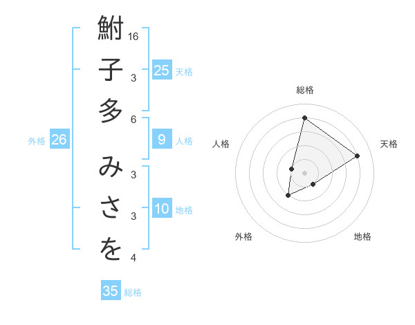 鮒子多 みさをさんの総格は35画の4点!