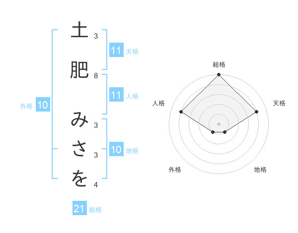 土肥 みさをさんの総格は21画の5点!