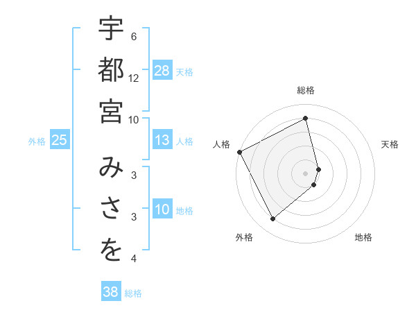 宇都宮 みさをさんの総格は38画の4点