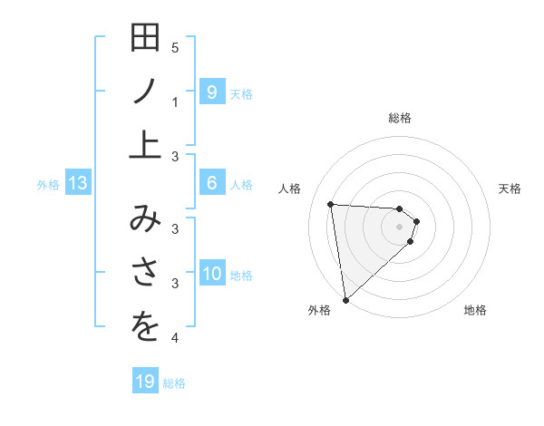 田ノ上 みさをさんを姓名の画数から五運を鑑定