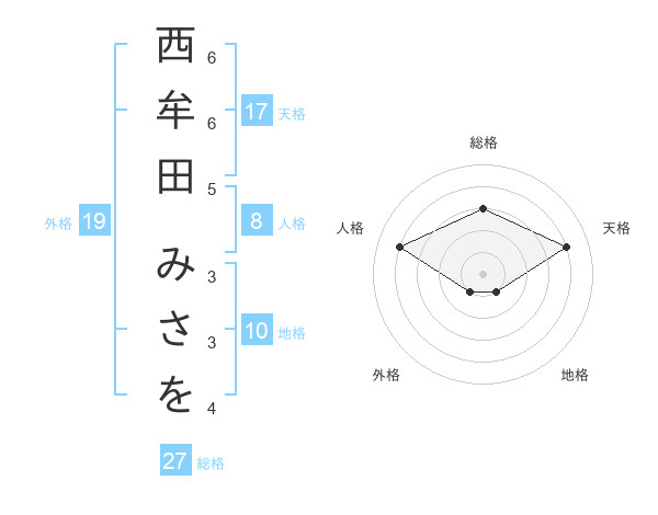 西牟田 みさをさんを姓名の画数から五運を鑑定