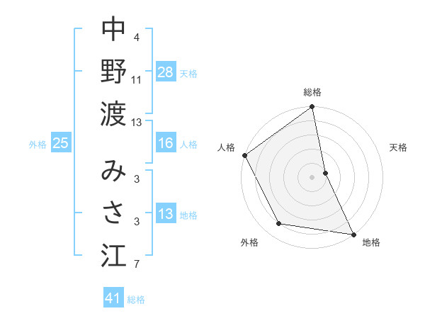 中野渡 みさ江さんを姓名の画数から五運を鑑定