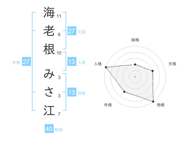 海老根 みさ江さんを姓名の画数から五運を鑑定