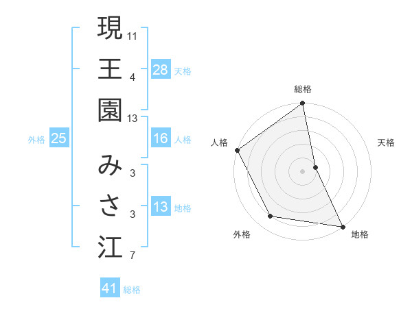 現王園 みさ江さんの外格は25画の4点!