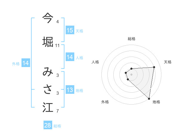 今堀 みさ江さんを姓名の画数から五運を鑑定