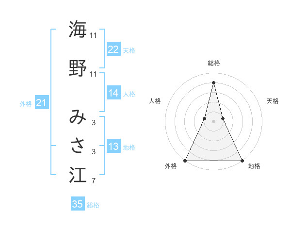 海野 みさ江さんの天格は22画の1点!