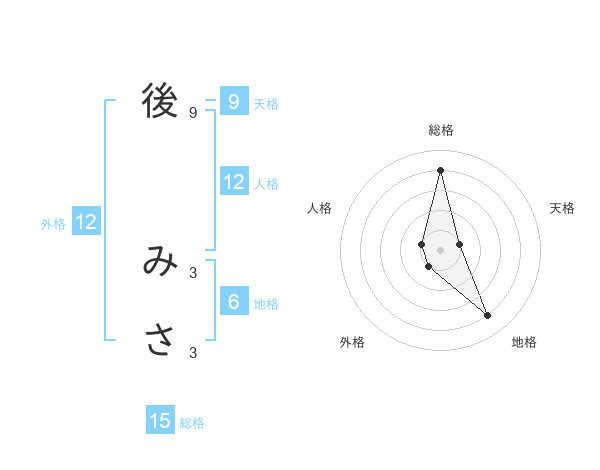 後 みささんの総格は15画の4点!