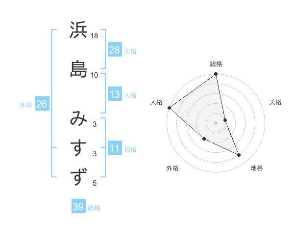 浜島 みすずさんの総格は39画の5点