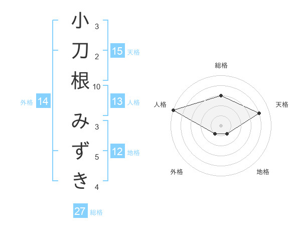 小刀根 みずきさんを姓名の画数から五運を鑑定