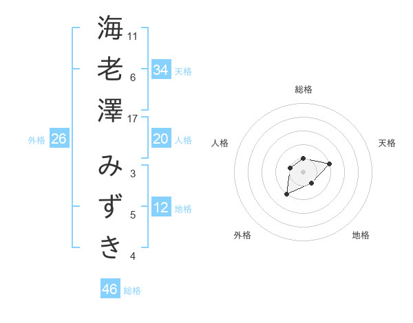 海老澤 みずきさんを姓名の画数から五運を鑑定