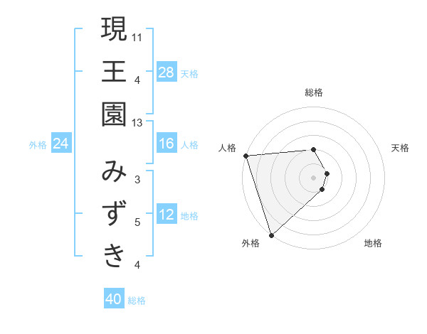 現王園 みずきさんを姓名の画数から五運を鑑定