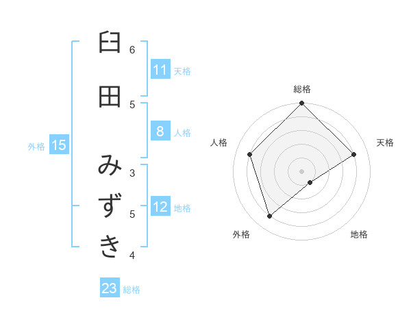 臼田 みずきさんを姓名の画数から五運を鑑定