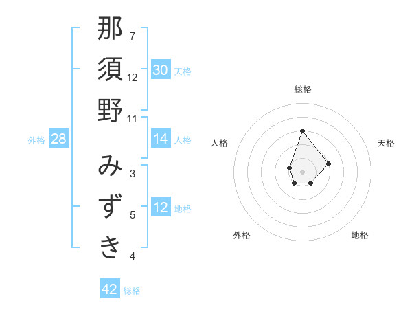 那須野 みずきさんの総格は42画の3点!