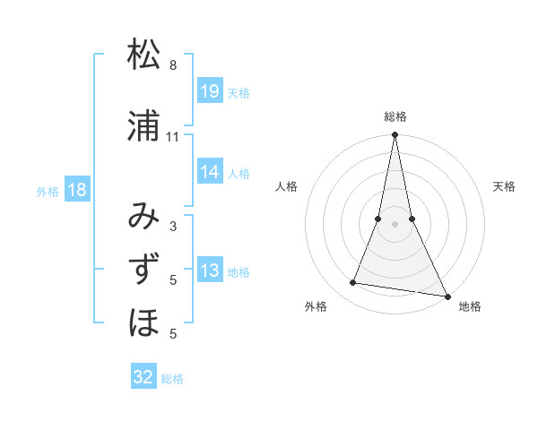 松浦 みずほさんを姓名の画数から五運を鑑定