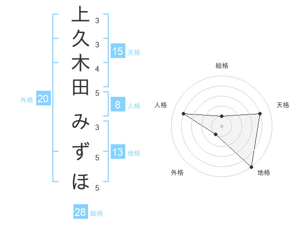 上久木田 みずほさんを姓名の画数から五運を鑑定