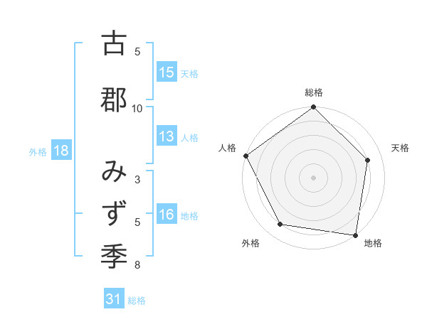 古郡 みず季さんを姓名の画数から五運を鑑定