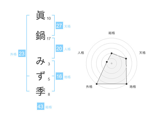 眞鍋 みず季さんを姓名の画数から五運を鑑定