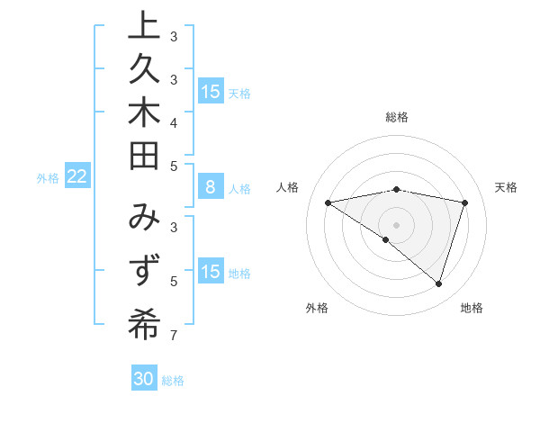上久木田 みず希さんを姓名の画数から五運を鑑定