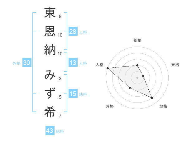 東恩納 みず希さんを姓名の画数から五運を鑑定