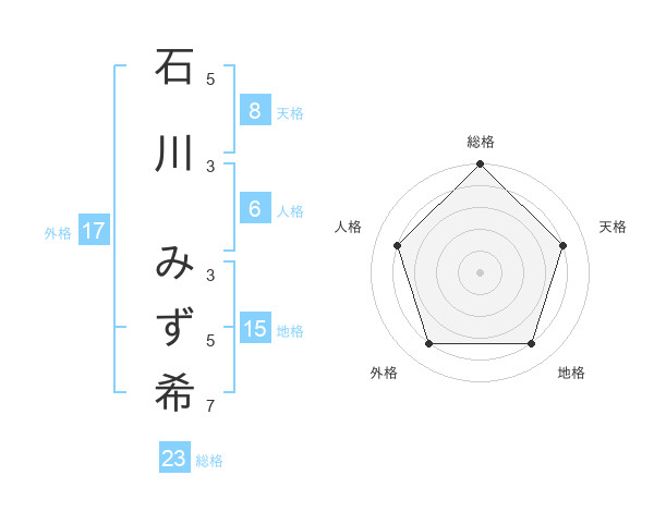 石川 みず希さんの総格は23画の5点