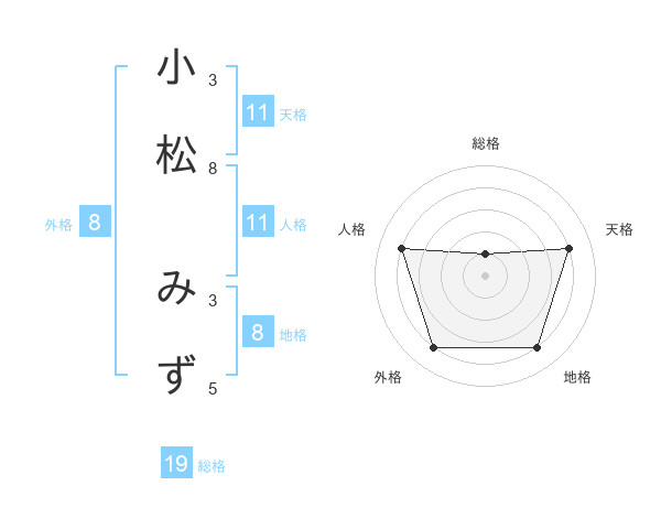 小松 みずさんの外格は8画の4点!