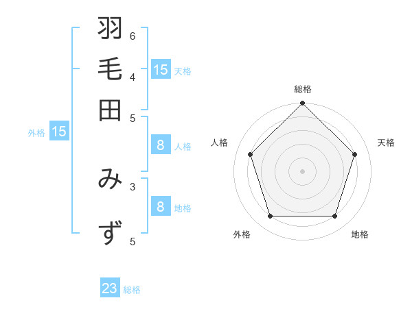 羽毛田 みずさんを姓名の画数から五運を鑑定