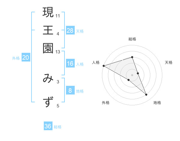 現王園 みずさんの天格は28画の1点!